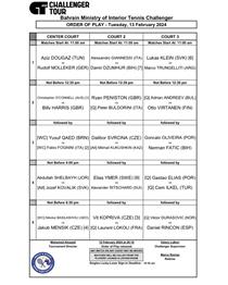 جدول مباريات يوم الثلاثاء الموافق 13 فبراير 2024م لبطولة وزارة الداخلية ATP تشالنجر للتنس. المزيد