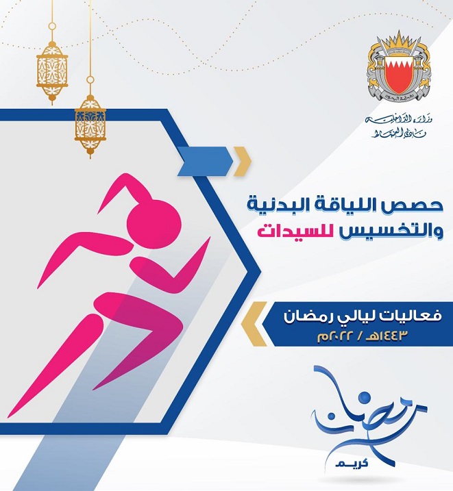 ضمن البرامج المتنوعة لشهر رمضان المبارك، يعلن نادي الضباط عن إقامة حصص اللياقة البدنية والتخسيس للسيدات تحت اشراف مدربات مختصات ، إبتداءً من يوم الاحد الموافق 03 ابريل2022م . وذلك بمعدل 5 حصص في الاسبوع من الاحد حتى الخميس من الساعة 1600 حتى 1645.