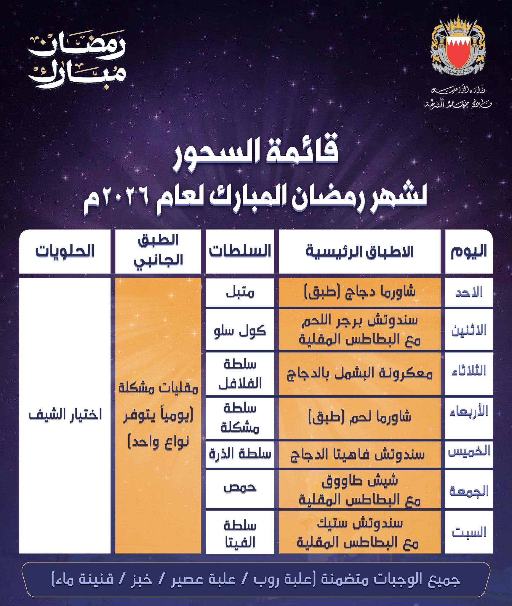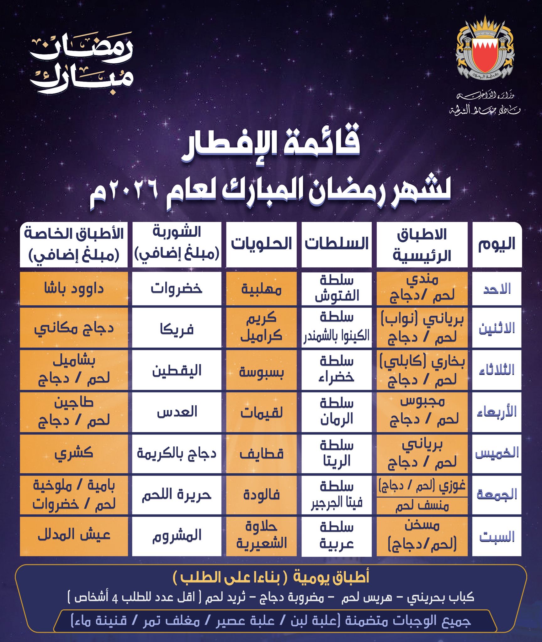 يعلن فرع الضيافة والمطاعم بالنادي للسادة الأعضاء عن توافر تشكيلة منوعة من وجبات الافطار والسحور والحلويات خلال شهر رمضان المبارك حسب الجدول المرفق.