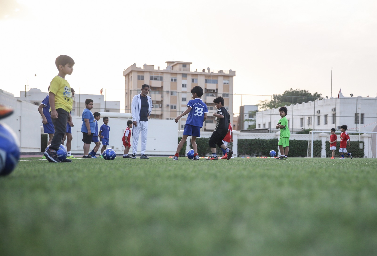 حرصاً من إدارة النادي على الاهتمام بالنشىء و ضمن خطة برامج النادي الرياضية لسنة 2018م ، دشنت إدارة النادي بداءً من مساء اليوم الاثنين الموافق 12 مارس 2018م مدرسة تدريب كرة القدم لأبناء الأعضاء على ملعب كرة القدم بالنادي و ذلك تحت إشراف مدرب النادي لاعب المنتخب الوطني السابق لكرة القدم الكابتن عدنان ضيف و بمشاركة 30 طفل تتراوح أعمارهم بين 6-14 سنة ، و قد اشتمل اليوم الأول للتدريب على حصة تدريبية و ترفيهية لهم حيث تم توزيعهم على مجموعتين حسب الفئات العمرية ، و قد تابع عدد من الضباط أولياء أمور المشاركين الحصة التدريبية الأولى من خارج أرضية الملعب و قد ابدوا أعجباهم بمدرسة تدريب كرة القدم و اثنوا على جهود النادي في تقديم برامج و أنشطة رياضية ترفيهية للأطفال .