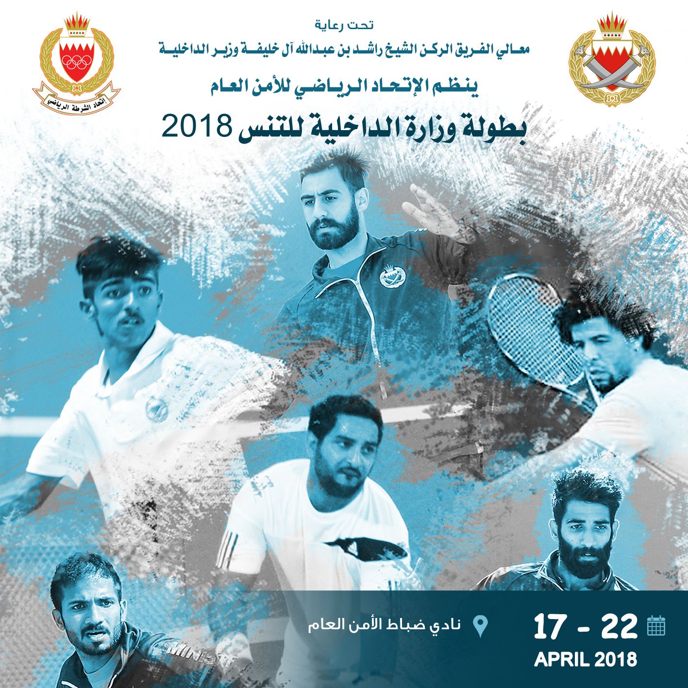 يستضيف مجمع ملاعب التنس بنادي ضباط الامن العام بطولة وزارة الداخلية للتنس ٢٠١٨م التي ينظمها الاتحاد الرياضي للأمن العام بمشاركة ١٦ لاعبا من ١٢ دولة و ذلك بدء من اليوم الاربعاء الموافق ١٨ ابريل و لغاية يوم الأحد الموافق ٢١ ابريل ٢٠١٨م