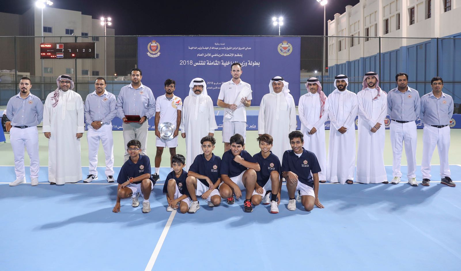 شهد الفريق الركن معالي الشيخ راشد بن عبدالله آل خليفة وزير الداخلية ، مساء أمس ، ختام بطولة وزير الداخلية المفتوحة الثامنة للتنس ، وذلك بحضور سمو الشيخ أحمد بن محمد آل خليفة رئيس الإتحاد البحريني للتنس، وسعادة اللواء طارق بن حسن الحسن رئيس الأمن العام ومعالي الشيخ هشام بن عبدالرحمن آل خليفة محافظ محافظة العاصمة ومعالي الشيخ أحمد بن حمد آل خليفة رئيس الجمارك وعدد من كبار المسئولين والشخصيات.